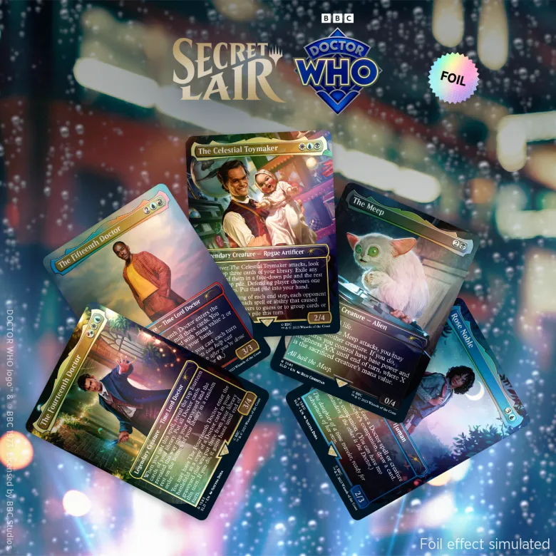 Para celebrar el evento interdimensional que lleva labrándose 60 años, Secret Lair x Doctor Who: Regeneration cuenta con personajes y momentos emblemáticos de los episodios especiales por el 60.º aniversario de Doctor Who en cartas nuevas y mecánicamente únicas.